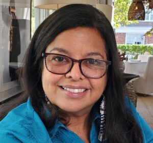 Denise “Weetahmoe” Silva-Dennis (Shinnecock/Hassanamisco-Nipmuc) is a multi-disciplinary artist and educator living on the Shinnecock Nation in Southampton, New York. Denise retired from the Southampton School District in 2016 after a 21-year teaching career, K-12, as an art teacher, safety-net teacher, and Resource Room teacher. Global Neighborhood, in conjunction with Southampton Intermediate School, selected Denise to travel to Australia (Brisbane and Yeppoon) in 2006 for a two-week special art assignment for students to learn about Native American Medicine Wheel teachings. Denise emerged from retirement and has been the Workshop Coordinator at Ma’s House & BIPOC Studio, Inc. since 2022. She is a board member of several non-profits, including Niamuck Land Trust, Peconic Land Trust, Shinnecock Kelp Farmers, and Hamptons Community Outreach.