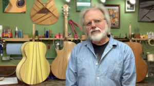 I make acoustic guitars in a shop about the size of a two-car garage, and I use woods that grow right here in the area where I live. What is most important to me in guitar making is to create a pleasing sound, an attractive appearance, good craftsmanship, and an instrument that is very special to each one of my customers.
